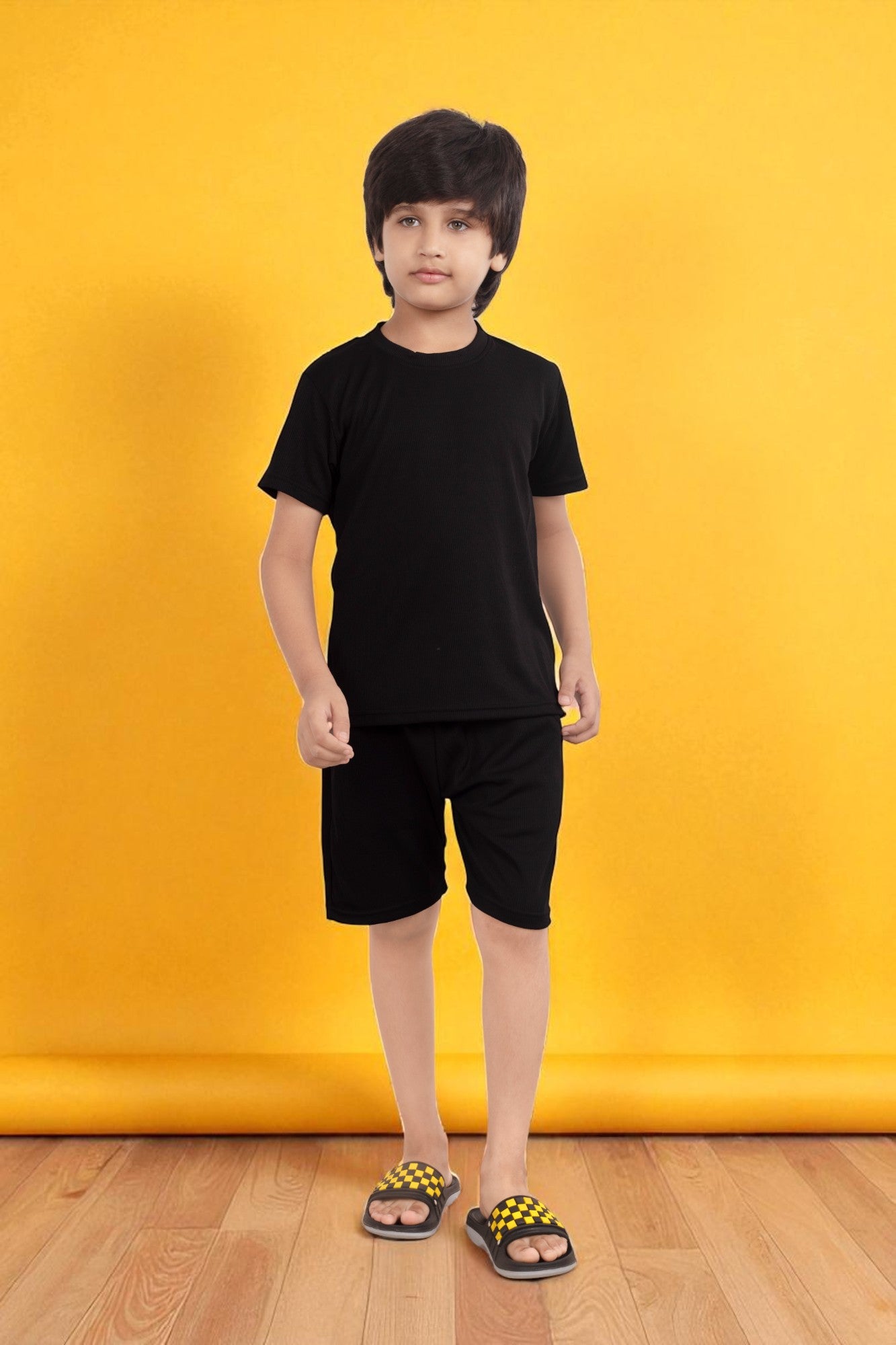These shorts and a t-shirt offer exceptional comfort and flexibility for your little one. It is made with premium quality cotton Mario Rib fabric. The stretchable material allows kids to play easily and is also perfect for bedtime. Its lightweight and moisture-wicking properties are the best pick for the summer days. There is no doubt about the durability of the fabric. It maintains its shape and colour with its long-lasting wear.It is easy to wear and suits all seasons.Kids love to wear black sets.