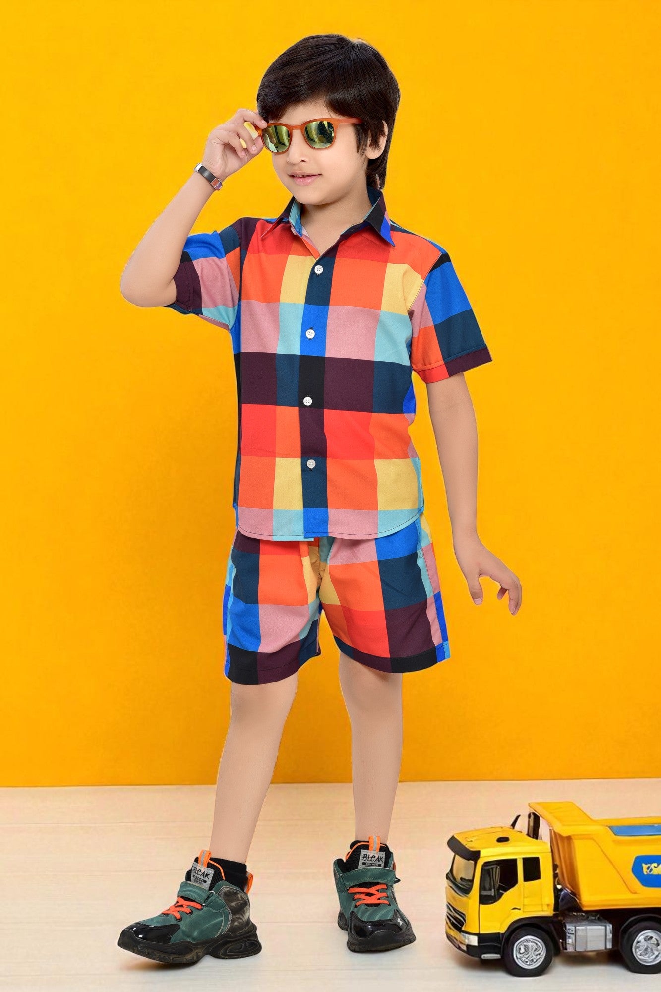 Multicolor Big Checks Printed Boys Cotton Co-Ord Set
