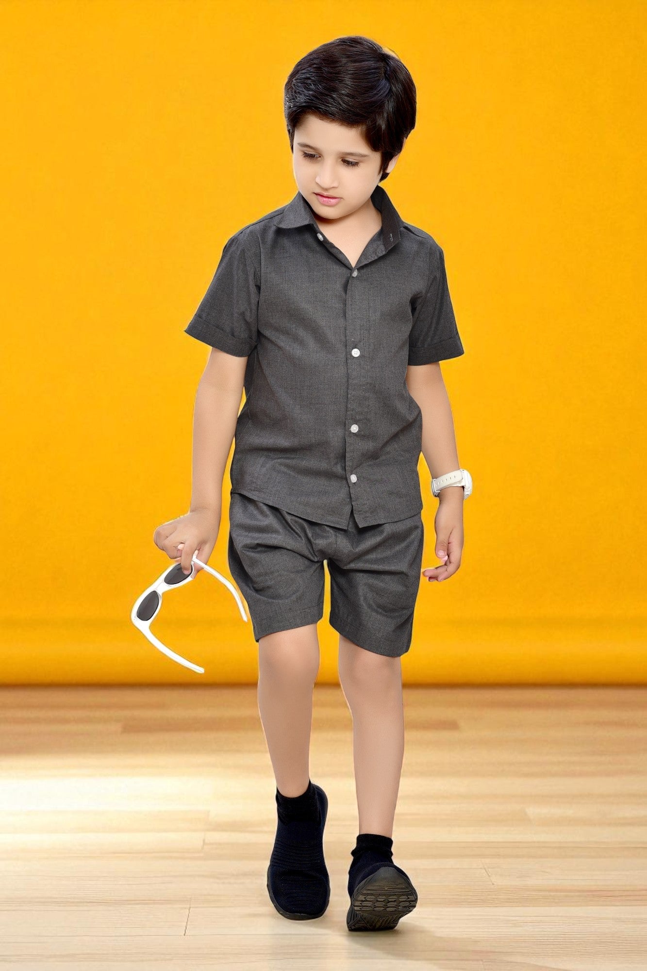 Plain Grey Summer Ready Cotton Co-Ord Set for Boys