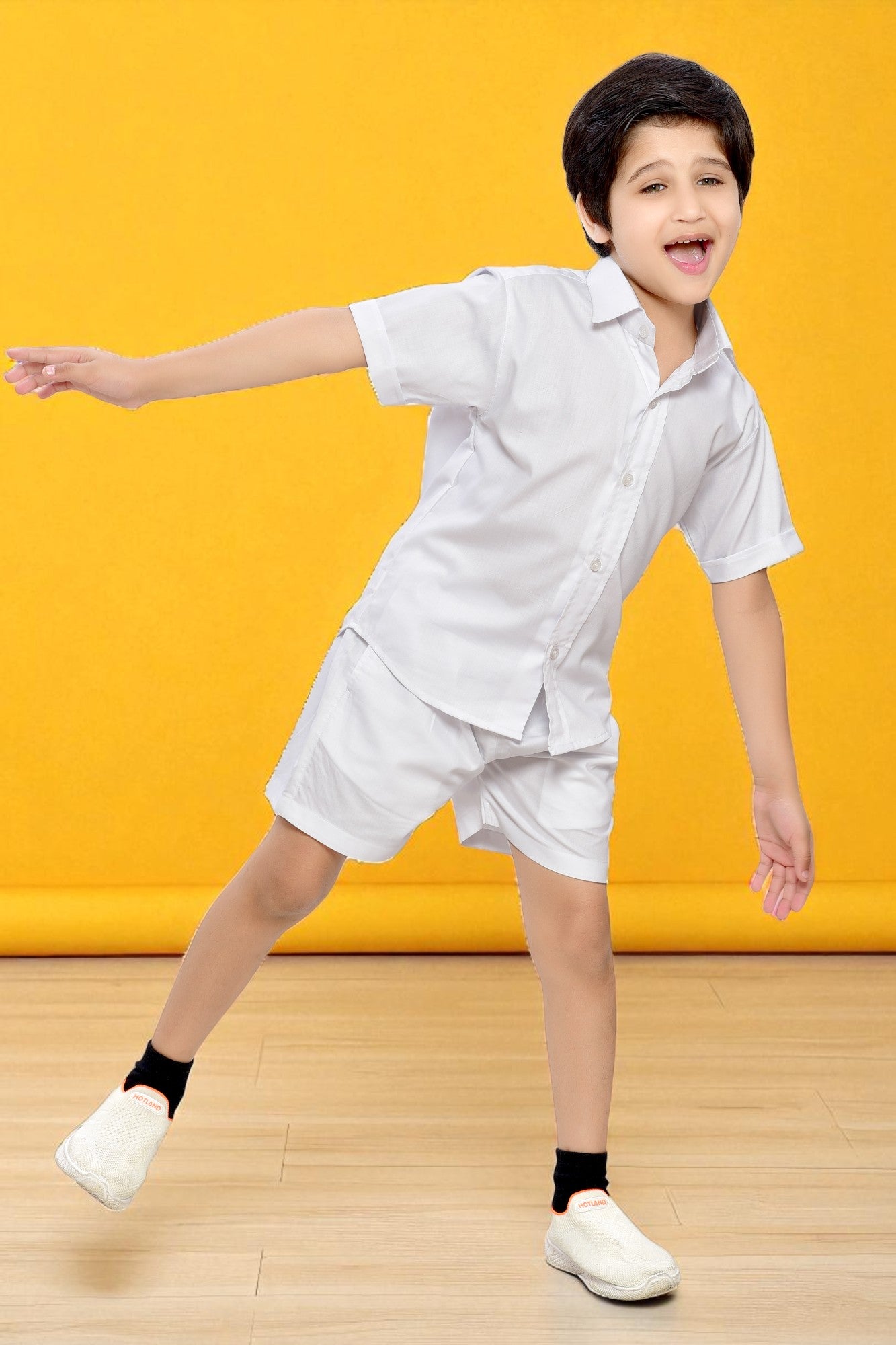 Summer Special Plain White Cotton Co-Ord Set for Boys